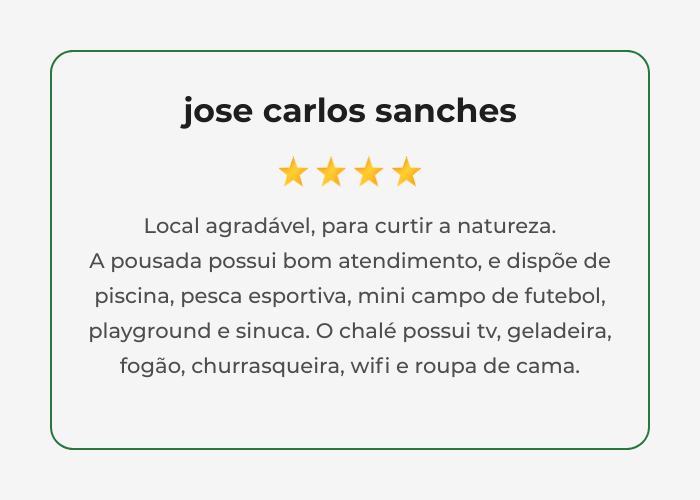 - Além de toda a área da pousada com campinho, piscinas, lago, playground.