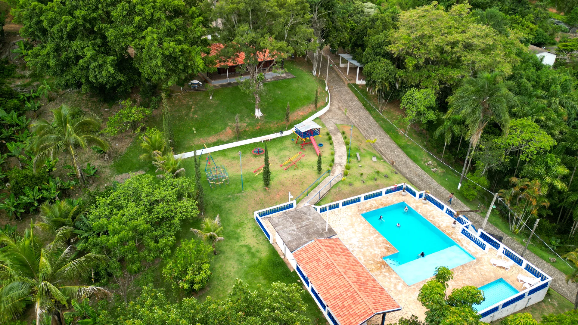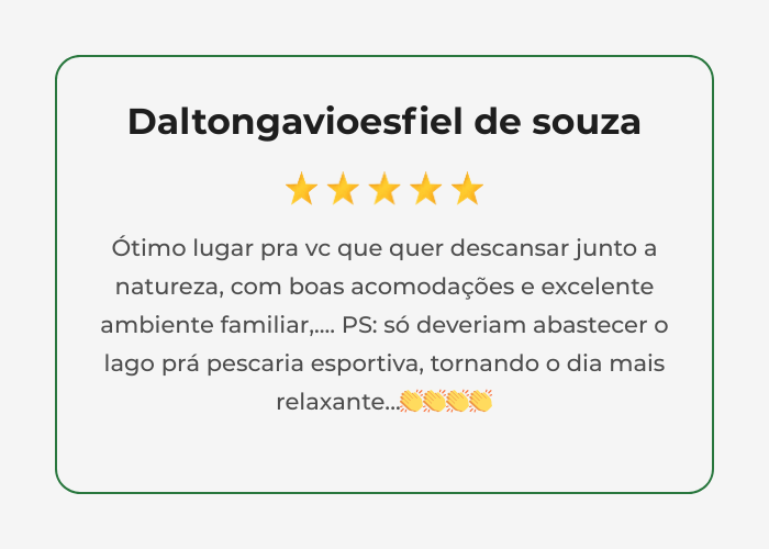 - Além de toda a área da pousada com campinho, piscinas, lago, playground.